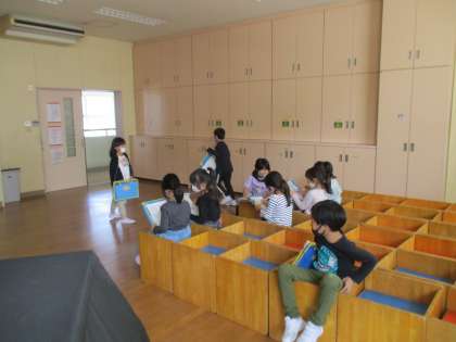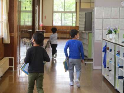 前回までは、学級全体で学校内の様子を紹介していました。今回は少し自由度を上げて、短い時間でしたが「生活科バッグにワークシートをはさみ、自分がもう一度見たいところを回る」活動を設定してみました。勢い余っていろいろなところを巡り歩いている子供たちもいましたが、自分たちで考えて、楽しい活動になったようです。