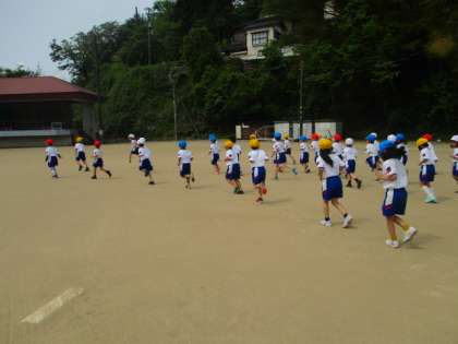 体育科で、50メートル走とリレーの練習を行いました。並び順を覚えた子が少しずつ増えてきました。バトンをもらう手の出し方(左手です)も自然とできるようになり、リードして走りながらバトンをもらうことができました。横の人とそろえて入場するのも少しずつ上手になってきましたね。
