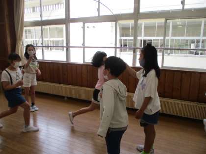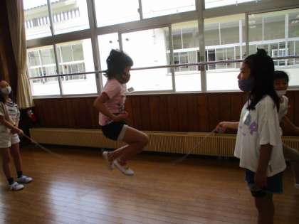 たつのこタイムに、大縄跳びをして遊んでいます。「8の字とび」がすごく続いて跳べていて楽しそうでした。回す人と跳ぶ人の息がぴったりと合ってました。