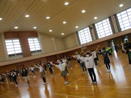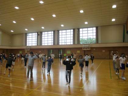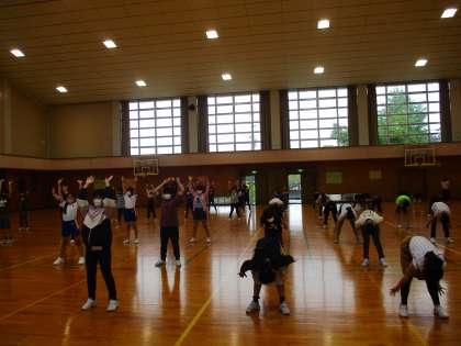 朝のトレーニングで、小運動会のダンスの練習を行っています。細かな動きを確認したり、グラウンドでダンスを大きく見せるためにどうしたらよいのかを考え合ったりしました。