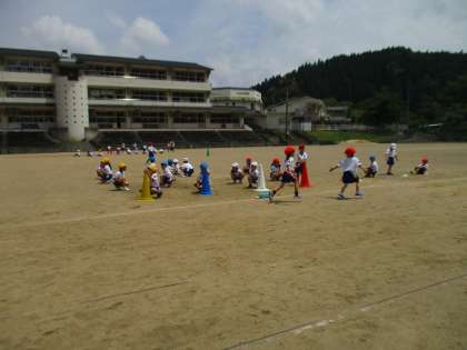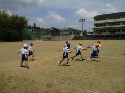 体育では、小運動会に向けて、延期期間を使ってリレーや50m走の練習を少しずつ続けています。自分たちでの整列、横列を意識しての入退場など、少しずつ、上達しています。リレーのバトンパスでは、後ろを見て、走りながらバトンを受けることのできる子供が増えています。