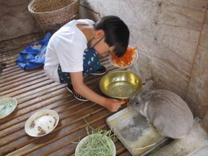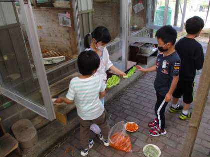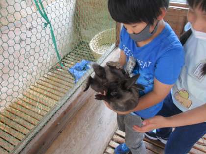 子供たちは、毎日うさぎのお世話を優しく丁寧にしています。今週は、うさぎを抱っこすることができた3人が大喜びしていました。