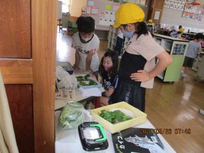 登校時、休み時間にと、子供たちは蚕の様子をのぞき込んだり、虫眼鏡で見たりして観察しています。もう少し大きくなったら、一人一人で育てていきたいと思います。