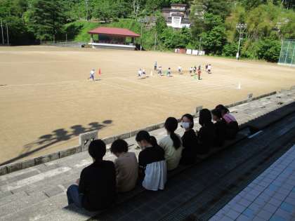 運動会の1000メートル代表の仲間の練習の応援にかけつけた6年生。朝から、苦しい練習に黙々と取り組む代表の選手たちに、エールを送っていました!