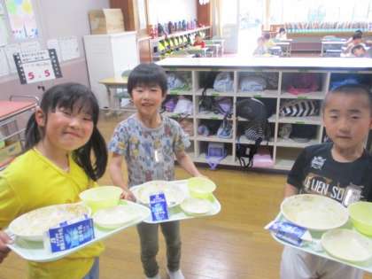 今日の給食ではハヤシライスが出ました。生活科の調理員さんのインタビューで「普段は食器洗浄機にすぐ入れるけれど、カレーライスやハヤシライスのときは一度手洗いしてから食器洗浄機に入れる」という話をされていたのを思い出しました。少しでもルウが皿に残らないように、スプーンで何度もルウをきれいにすくっていました。みんなのお皿も、みんなの心も、ピカピカですね!