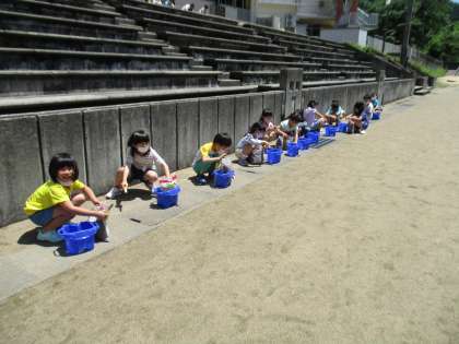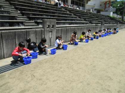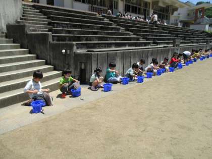 教室で一通り、活動の流れを聞いた後、自分のポットをもって外に出ました。
