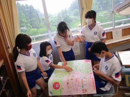 Tさんが、「総合的な学習の時間のヒントになりそう」だと、家から「防災すごろく」を持ってきてくれました。楽しく仲間と遊びながら、いろいろな情報を得ているようでした。