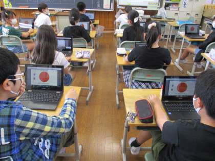 話合いの後、クロムブックで道徳科のデジタル教科書にあるコンテンツを利用して、心のメーターを円グラフで表しました。仲間と有意義な話合いができたことが、メーターによく表れていました。