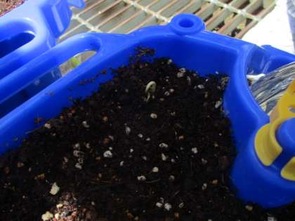 写真は、水をかけて少し葉っぱが出てきた様子です。