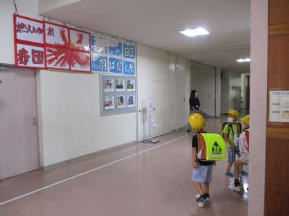 児童玄関に運動会のデコレーションを掲示しています。今週は、デコレーション長が、作品に込めた思いを放送で紹介しています。それぞれの色団の思いが込もったデコレーション、当日どの団が賞を獲るのか楽しみです。