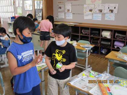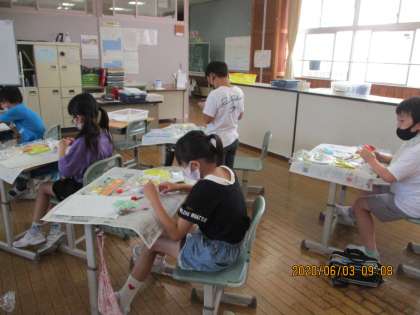 4年生の子供たちは。図画工作科が大好きです。今日は待ちに待った「元気のおまもり」の製作です。自分へ家族へそれぞれの思いを込めて、お守り作りを楽しく行いました。