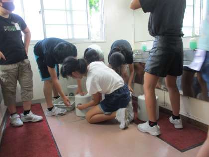 小運動会前日、天気予報通り雨でしたがテントの重りの準備を行いました。