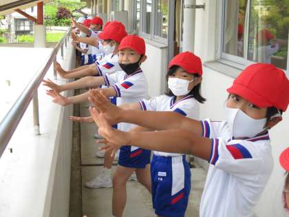 いよいよ各団のエールが始まりました。5・6年生のかっこいい姿を見ながら、4年生の子供たちも手拍子や歌の演技をがんばりました。