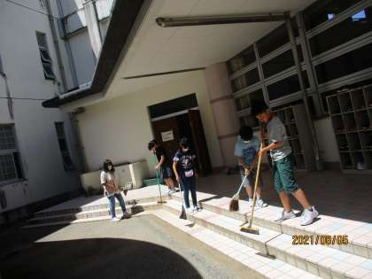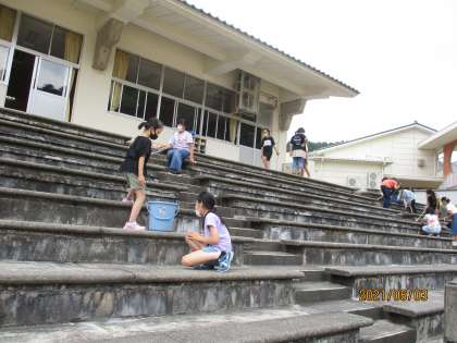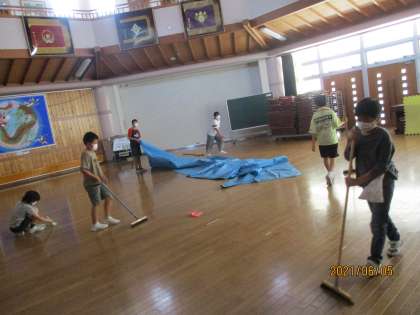 また、当日も、おいしいお弁当を食べた後、早く食べ終わったTさんが「校舎内に入った砂をきれいにしたい」とつぶやき、掃除をしに行く姿がありました。そんなTさんの思いにたくさんの仲間が賛同し、あっという間に校舎内外がきれいになりました。やり終えた子供たちは、とても清々しい表情をしていました。