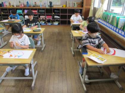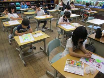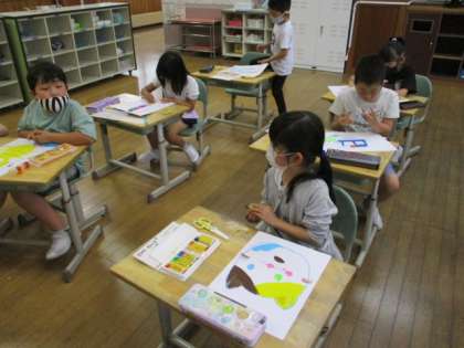 今週の図工は、「ふしぎなたまご」を描きました。ふしぎな卵ってどんな形かな?どんな色をしているんだろう?クラスで話し合いながら、一人一人が想像を膨らませて、描きました。描き始めると、みんな夢中になって取り組んでいます。