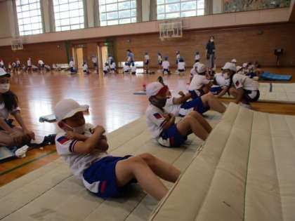 今日は、体育でスポーツテストを行いました。5年生さんとペアを組み、数を数えてもらったり、やり方を教えてもらったりしました。今週は、ソフトボール投げもします。ボール投げの学習の成果が出るといいですね。昨年度より、どれだけ記録が伸びたかも、子供たちと比べてみたいと思います。