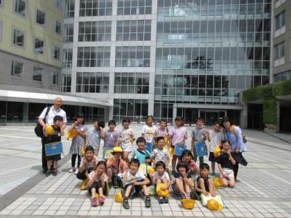 市役所の下で、みんなで記念撮影をしました。
