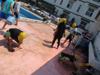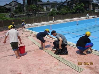 今週、プール開きがあります。去年はプール学習がなかったため、2年分の汚れを落とさなければなりませんでした。そこで、4年生は溝に溜まった落ち葉や汚れ、5年生は小プールと更衣室、6年生は大プールを任されました。上学年、みんなで力を合わせて、とてもきれいになりました。