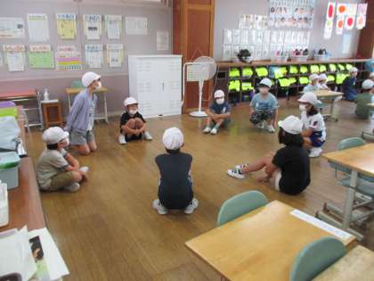 午前中の長休みに、たて割り班での活動がありました。コロナ禍中でも実施できる活動を、集会委員会の子供たちが一生懸命に考え、今日の活動となりました。