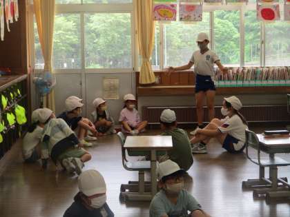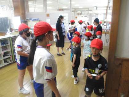 集会委員会の企画した集会がありました。6年生の進行で、自己紹介やジェスチャーゲームを行い、同じ班の仲間との交流を楽しみました。