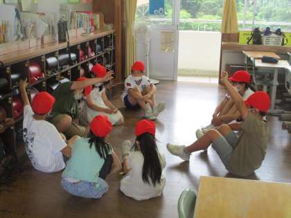 6年生は、集会の後に小運動会の応援のお礼を伝えました。同じ班の子たちに、自分の名前をしっかり覚えてもらえたら、6年生の今日の目的は達成です!