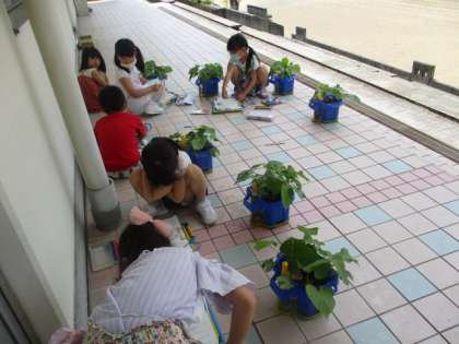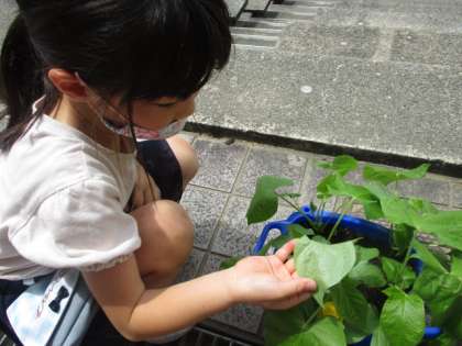 今日の生活科では、久しぶりにあさがおの観察を行いました。普段から水やりの時に見たり触ったりしているようで、「葉っぱがざらざらになったよ」「毛が生えているんだよ」と葉の変化に気付いている子がいました。