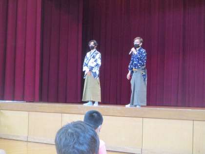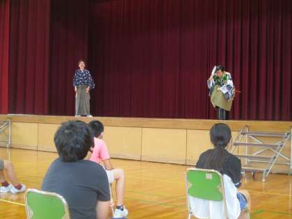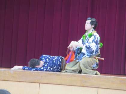 狂言ワークショップがあり、本物の狂言を目の前で見ることができました。狂言の面白さや特徴を教わってから「柿山伏」の演目を観てみると、より想像力を膨らませながら楽しく観ることができました。