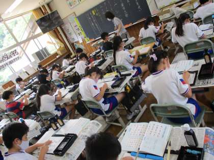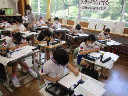 書写の時間に、小筆でカタカナを書くことに挑戦しました。どの子も集中して取り組んでいました。