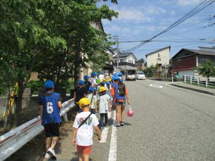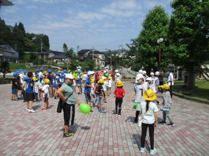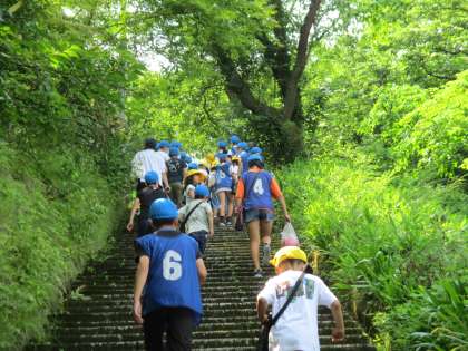 梅雨の晴れ間の今日、6年生と1年生とで一緒に、城ケ山の公園まで行ってきました。コロナ禍でも、一緒に関わることのできる方法を6年生が考えてくれ、一緒に楽しく過ごすことができました。ここでは、白団、青団の活動の様子を中心にお伝えします。