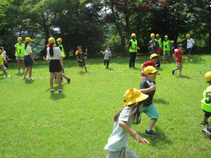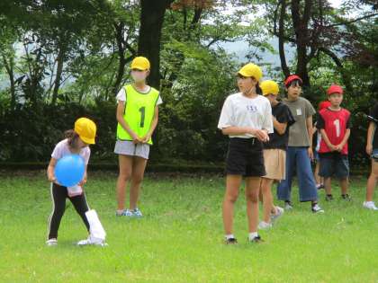 色団に分かれて、密を避けながら城ヶ山へ。前半は、赤黄団が運動公園を利用しました。事前に遊びを考えていた6年生ですが、場所に合わせて遊び方を変えながら1年生と楽しんでいました。