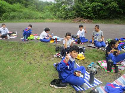 みんなで食べるご飯、外で食べると一段とおいしかったです。