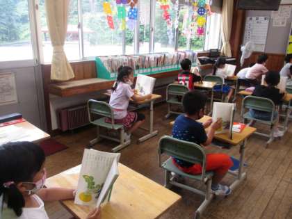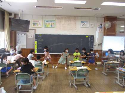 今日の国語科では、「おおきなかぶ」の劇をしました。たくさんの子が「出たい!」と積極的に手を挙げてくれました。順番に、役をする子と話を読む子に分かれて劇をしました。