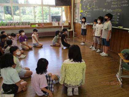 4年松組では、係活動でそれぞれが友達を笑顔にして仲良く楽しいクラスにするために「チャレンジ&スマイルフェスティバル」を開催しました。今日は、音楽を流しての爆弾ゲームをしました。ティッシュ落としや絵本クイズ等、フェスティバルの内容を工夫しながら行っていました。みんなとても楽しそうでした。