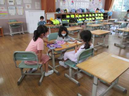 1年生では、1学期最後の週に、お楽しみ集会をしようと、両方の学級でそれぞれ計画をしています。
