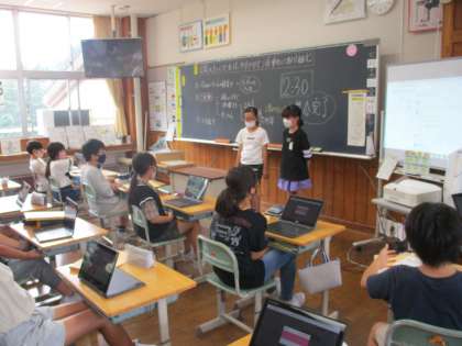 避難訓練への意識調査をしようと準備を進めてきた二人。アンケートが完成して、みんなに協力のお願いをしました。避難訓練の時の指差し確認や避難経路図のチェックについて、クロムブックで質問や記述欄を上手につくることができました。土日に答えることはできたでしょうか?結果が楽しみです。