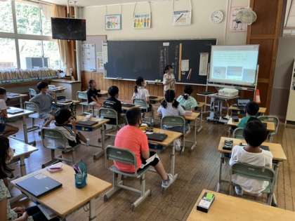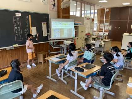 はじめてのパワーポイントでしたが、画像を入れたり文字に色をつけたりするなど工夫してまとめることができました!発表の時に使用したレーザーポインターにも興味津々でした!