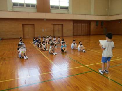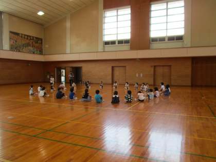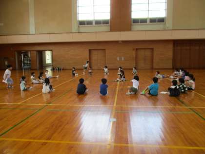 休憩をはさんだ後、体育館に移動して、ハンカチ落としを行いました。