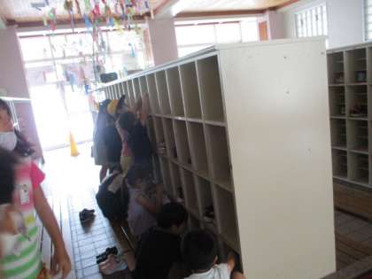 終業式の後、あゆみを渡しました。その後、教室中の大掃除をしました。机や椅子の脚のほこりとりや、ロッカーの中等を掃除しました。棚の物を動かしたり、ゴミ箱が入っている棚などのほこりをとったりもしました。最後に下足箱をきれいにしました。今までお世話になった教室等をぴかぴかにして、1学期を終了しました。2学期も気持ちのよい環境で、勉強に運動にと、みんなと楽しんでいきたいものです。