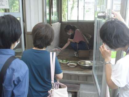 久しぶりの再会でしたが、小さいときの面影があるものの元気に育っていることやいい環境で飼育されていることも喜ばれていました。産まれたときの写真を見せていただき、そのときの様子や他の兄弟のこと等、貴重なお話を聞くことができたので、2学期子供たちにも是非、聞かせてあげたいと思います。