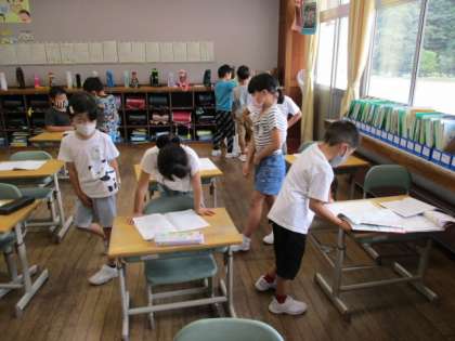 今日は、自学ノートをお互いに見合う時間をとりました。一人一人の取組から学んで、自分の学習に生かしていってほしいと思います。おうちの方にも問題を出していただいたり、プリントを用意していただいたりと、たくさんご協力いただき、ありがとうございました。