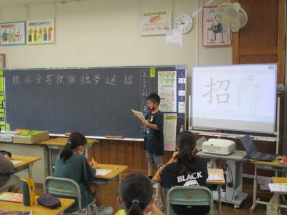 書写の時間に新出漢字を学習しました。書き順や気を付けるポイントについて、進んで発表する姿が立派でした。2学期も、漢字の練習をがんばりましょうね!