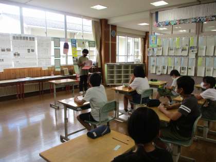 クラスで、夏休みに取り組んだ自由研究の紹介を行いました。水をきれいにする実験やオリンピックについてまとめたもの、ペットボトルの形について調べたものや水あめ作り、ズボンをリサイクルして作ったリュック等、子供たちが取り組んだ力作がそろいました。