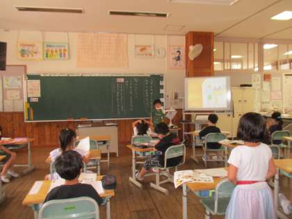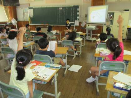 絵日記プリントに書いた夏休みの出来事から一つを選び、学級で発表しました。発表の後、質問タイムもあり、おもしろい質問がいくつも飛び出していました。