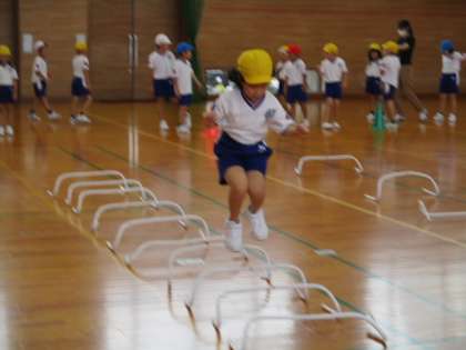 簡単なコースよりも難しいコースを選び、一生懸命取り組む子供たちの姿が見られました。はじめはうまく跳べなくても、何度も挑戦してできるようになると、とても嬉しそうでした。また、友達と競争して楽しむ子もいました。今度は子供たちと相談しながら、もっと楽しめるようにサーキットを作り替えていきたいです。