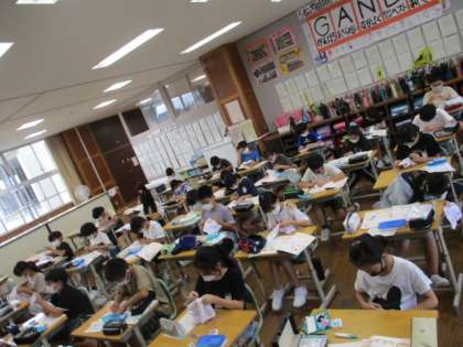 家庭科の学習で、返し縫いや半返し縫い、まつり縫いにチャレンジしました。子供たちは、それぞれの違いやよさを感じながら、黙々と取り組んでいました。