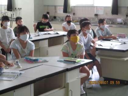 今日の理科の学習は、水の変化の学習です。水蒸気はどのようにしたら水に戻るのか等の実験をしました。「水を冷やして水滴がビーカーについたよ!」と教えてくれる子供たち。とても楽しそうに、かつ真剣に学習していました。