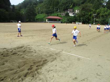予定されていたチャレンジ陸上大会が中止となりましたが、各小学校で50メートル走、ソフトボール投げ、走り幅跳びの記録をとる予定です。今、記録会に向けて走り幅跳びの猛特訓をしています。踏み切りや跳び方が、少しずつ形になってきました!
