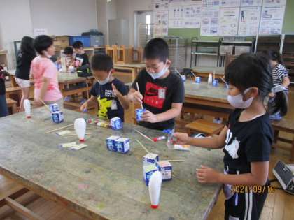 今日の図工は、液体粘土に絵の具を混ぜて、指や手を使って絵を描いてみました。まずは、絵の具づくりからです。どんな色にしようかなと、ドキドキしながら絵の具を垂らして混ぜ始めました。