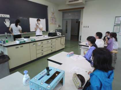 竹組に来られていた養護実習の先生が、手洗いの指導をしてくださいました。