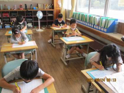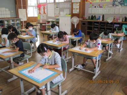 今、図工では、「まどからこんにちは」という学習で、カッターナイフを使って窓やドアを作って、窓から見えるものを想像しながら作品づくりを楽しむ学習をします。今日は、カッターナイフの使い方を学びました。初めて使うカッターに戸惑う子もいましたが、正しい持ち方を確認し、紙の動かし方や切り方のこつを少しずつつかんでいきました。みんな、とっても真剣です。